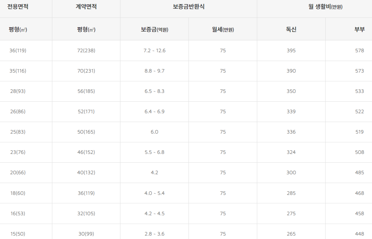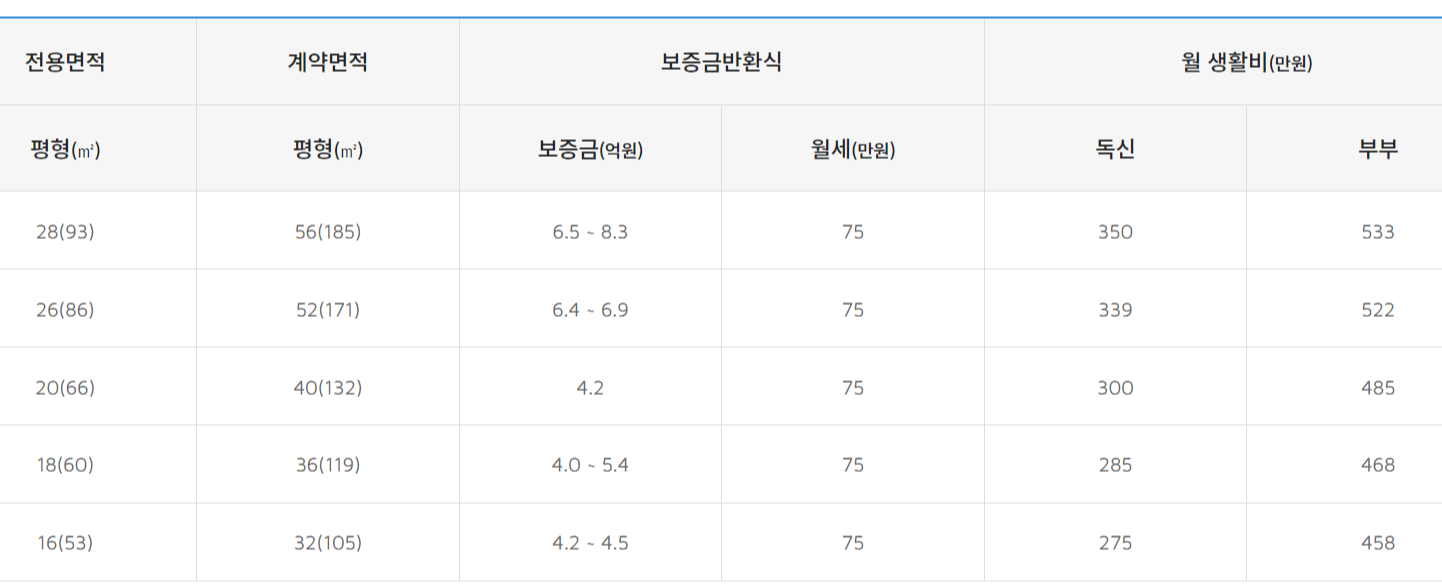 입주보증금은 주거공간 및 부대시설(리빙프라자, 스포츠센터 등) 이용에 대한 보증금 성격으로 퇴소 시 계약 방식에 따라 반환됩니다. 계약기간은 입주 후 3년으로 재계약시 입주 보증금은 변동될 수 있습니다.
