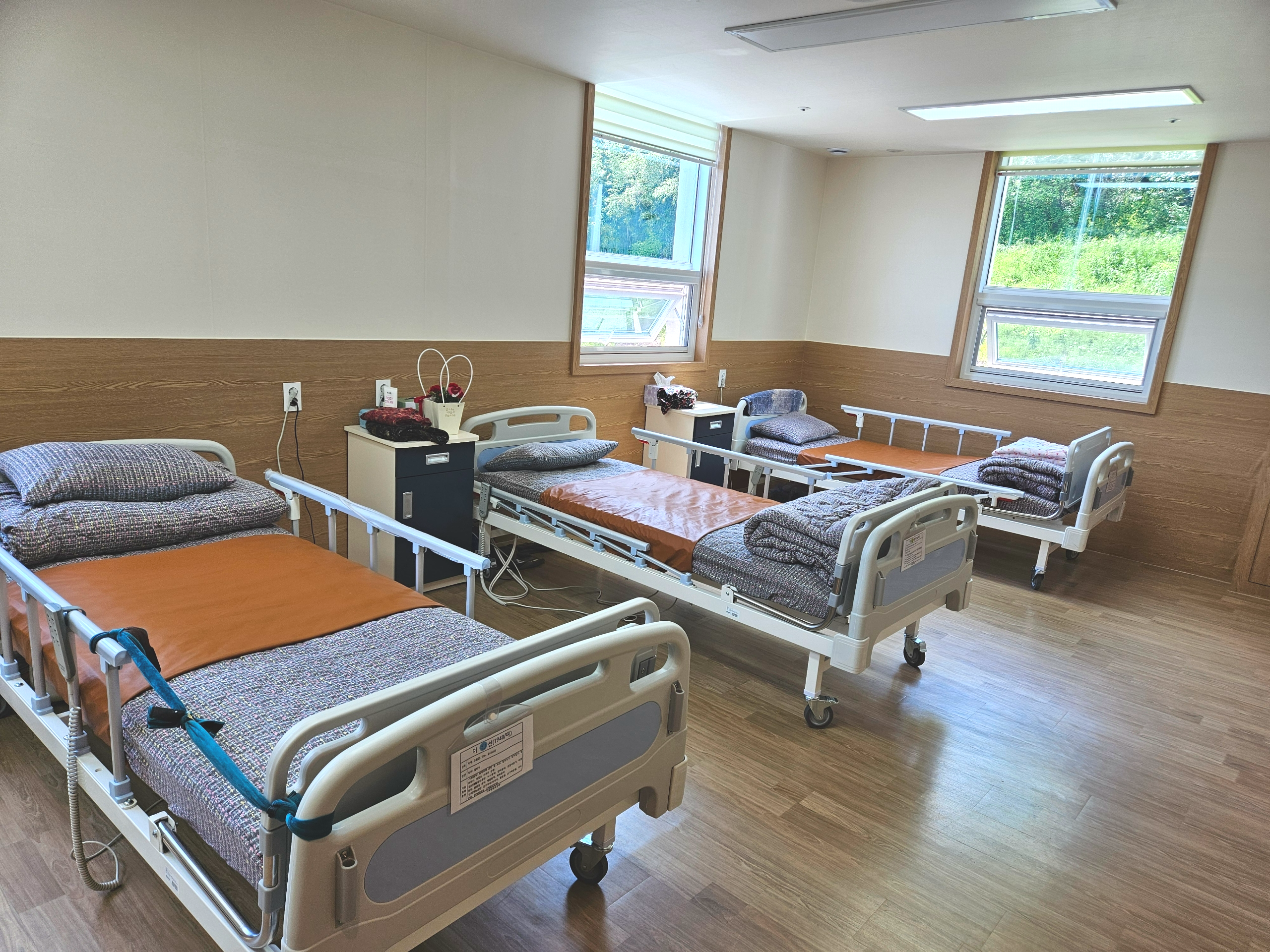 3 연동 저상 안전 배드, 냉난방 시설, 공기 청정 자동환기 시스템, 전용 화장실, 수납장, TV, 인터넷