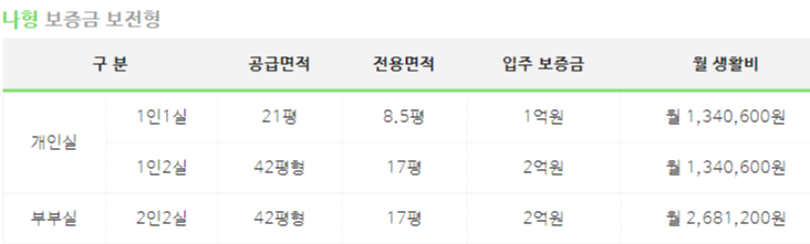 ※ 월 생활비는 매년 물가상승률을 반영하여 변경될 수 있습니다.
