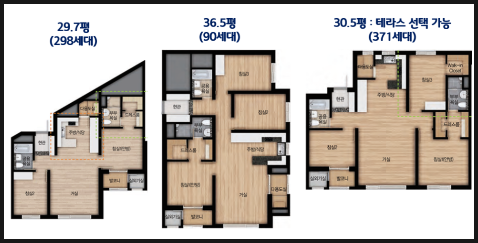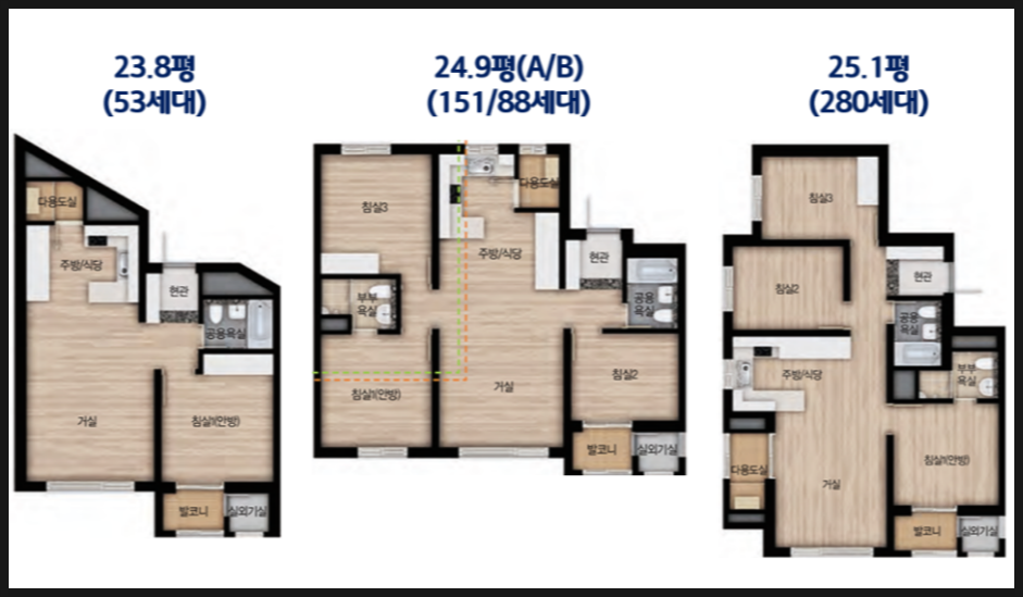 23.8 ~ 36.5PY 전 세대 중소형 평형대로 구성되어 있습니다.