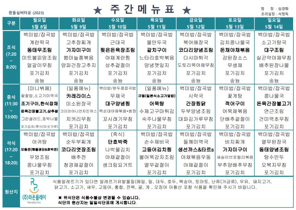 ♣ 이번 주 식단표 (2023.05.08~2023.05.14)