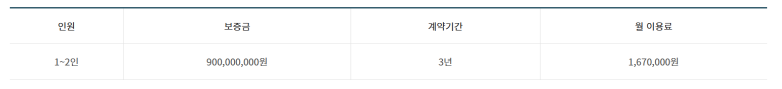 입주 보증금 및 월관리비(2023년 9월 기준)