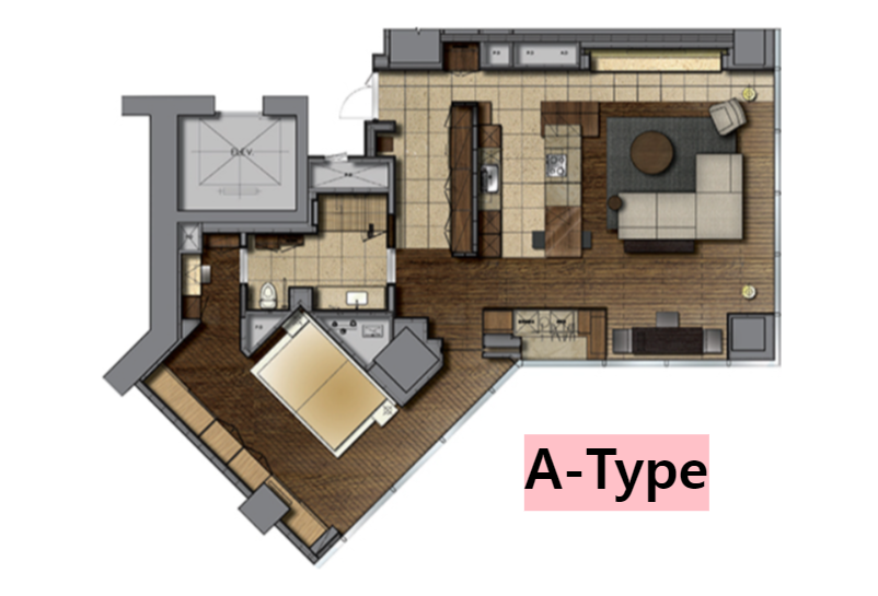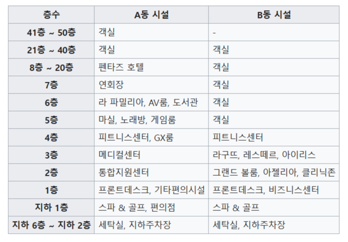 A동 : 5층~20층까지는 호텔객실이며 21층부터 50층까지 시니어를 위한 주거공간입니다.