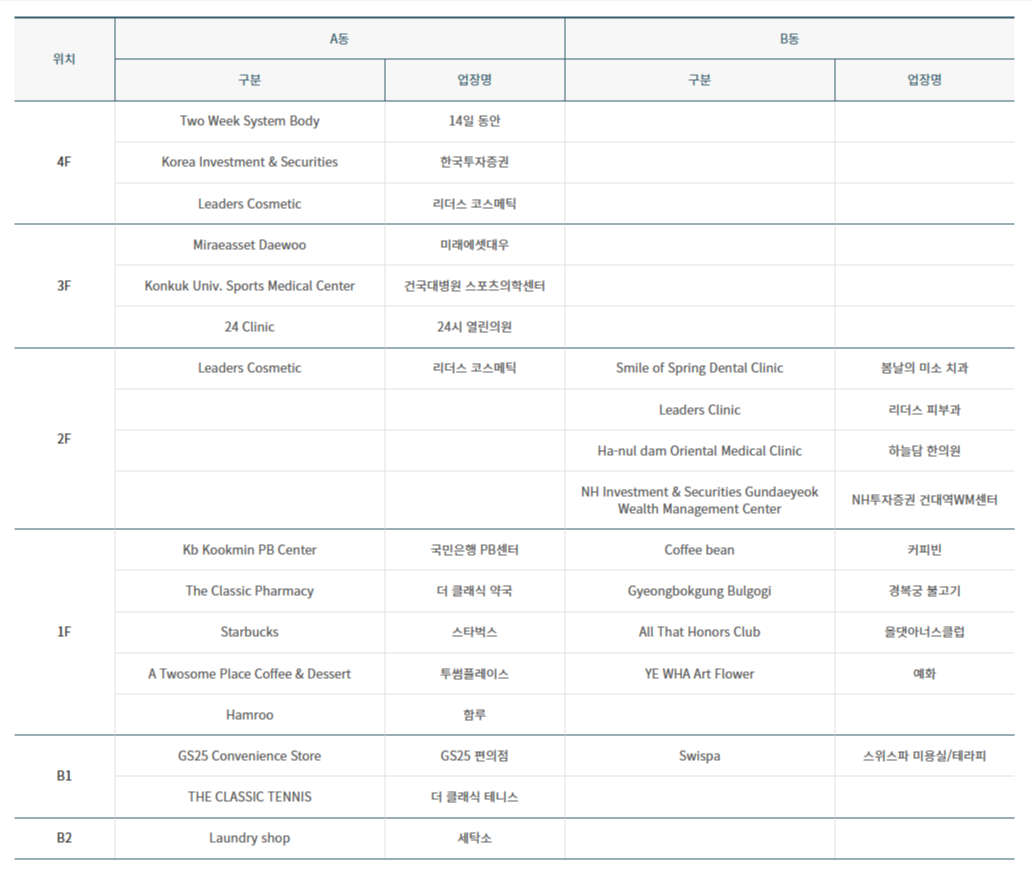 건국대학교 바로 옆에 지상 A동 50층(196M), B동 40층(177M) 2개의 건물로 이루어져 있고 주거시설 380실과 호텔급 부대시설을 갖추었습니다.