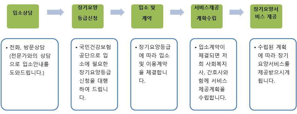 치매,중풍,노인성 질환 등 장기요양서비스를 필요로 하는 어르신- 노인장기요양보험법에 따라 1.2등급 대상자 및 3~5등급 대상자 중 시설급여를 부여받은 어르신