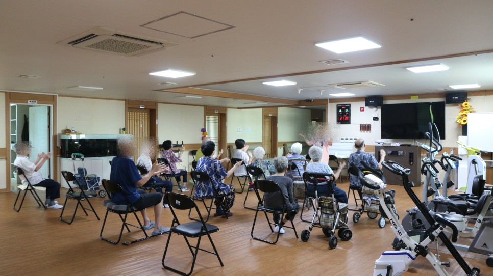 매일 꾸준한 스트레칭과 맨손 운동으로 신체 건강을 유지토록 도와드리고 있습니다.