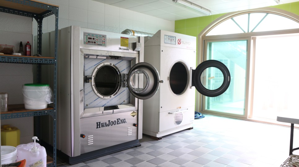 대형 세탁기, 건조기가 구비되어 있어 상시 위생적인 의류, 침구 재가 서비스를 진행하고 있답니다.^^