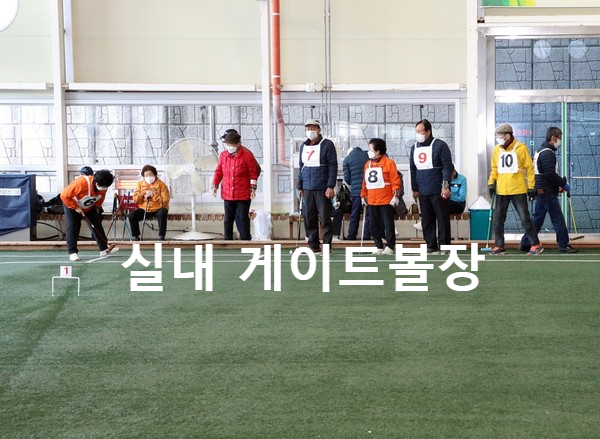 실내 게이트볼장은 지붕공사가 되어 있어 우천, 악천후에 관계없이 항상 이용할 수 있는 노년건강운동시설입니다.