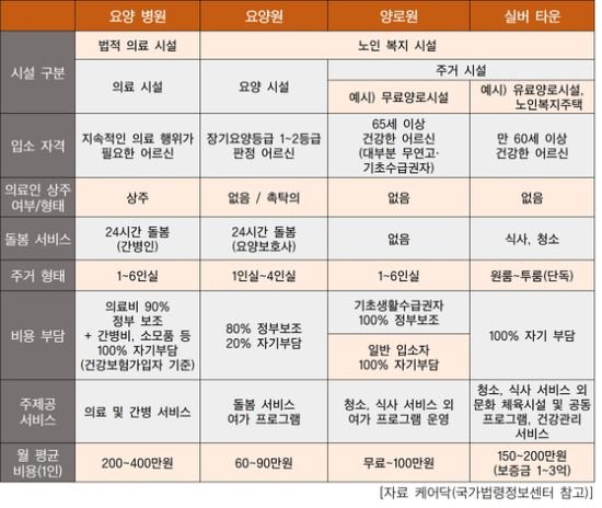 ▣ 실버타운, 양로원, 요양원, 요양병원의 차이