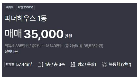 현재 17평 하나만 매물로 나와있네요(3.8억)