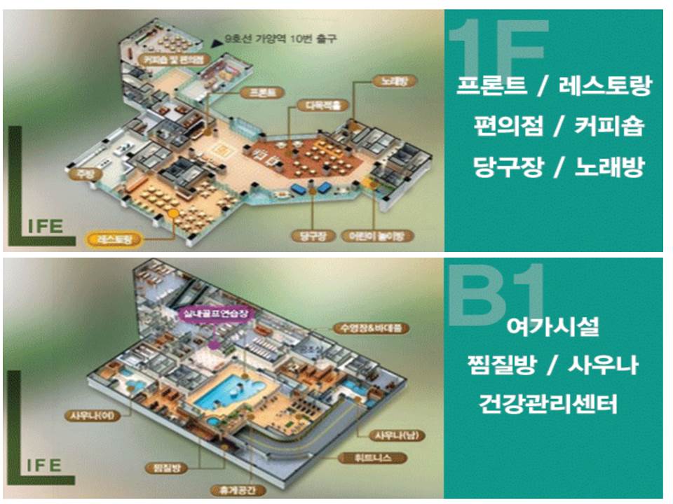 ✓ 1B : 사우나, 골프연습장, 탁구장, 대강당