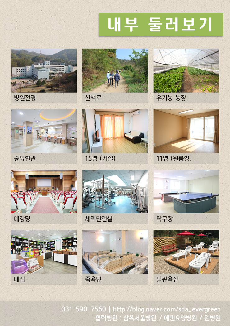 에버그린센터는 대형요양병원(암전문 병원)인 에덴요양병원과 같이 있다는 점이 가장 큰 장점