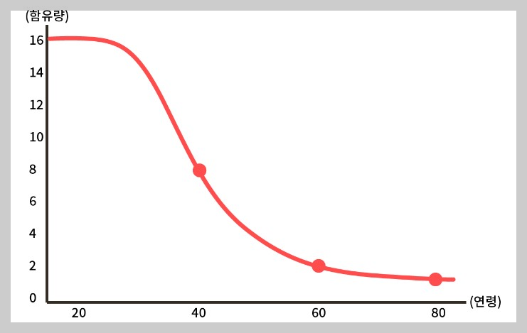 실제 연구 결과에 따르면 콘드로이친 생성량이 40대가 되면 20대의 절반 수준으로 떨어지며 70대가 되면 거의 소멸된다고 합니다. 그렇기 때문에 나이가 들면 콘드로이친을 별도로 섭취하는 것이 꼭 필요한 것이지요.