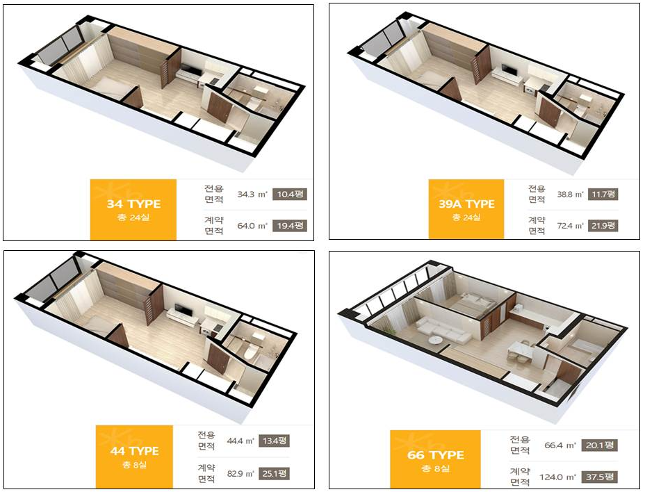 지하 2층 ~ 지상 5층 규모이며 총 164세대로 구성되어 있습니다.
