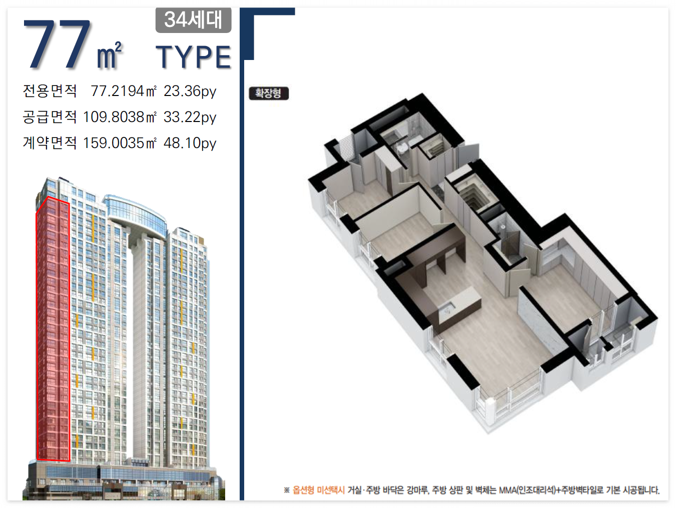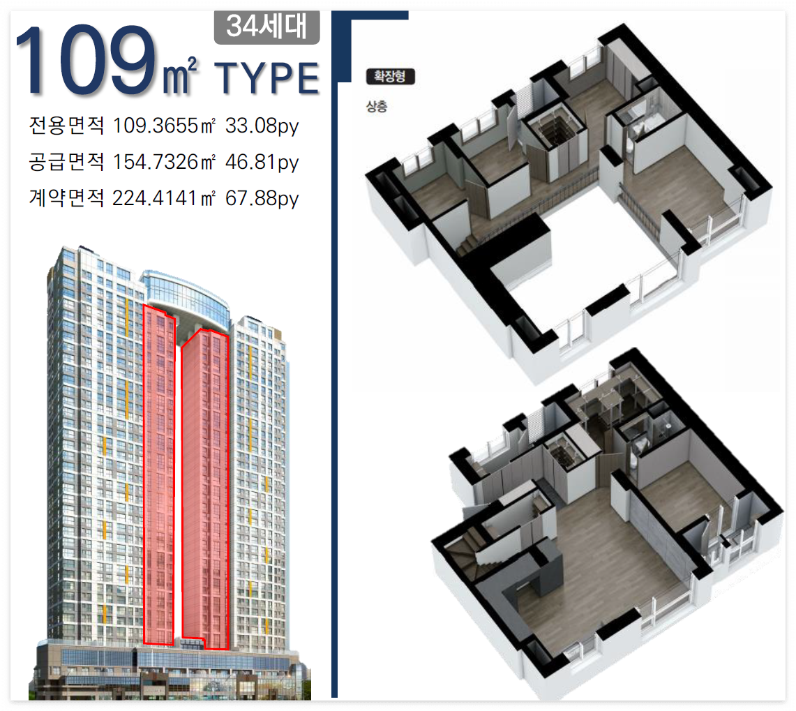 여긴 특별하게도 복층구조인 109㎡이 있습니다.