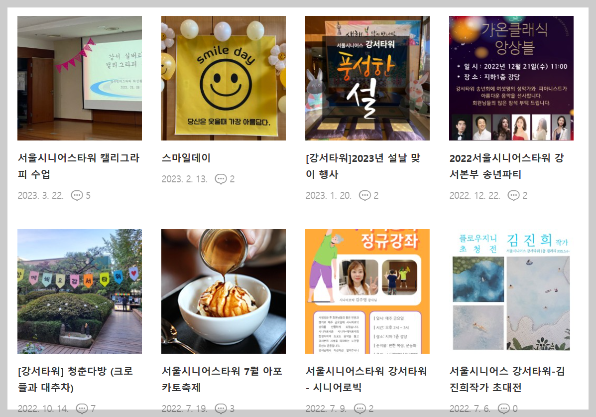 서울시니어스타워는 홈페이지 보다는 블로그를 방문하시면 활동 사진들을 다양하게 보실 수 있습니다.