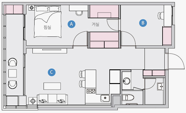 A타입(24평 / 220세대) : 동향, 동남행, 서남향