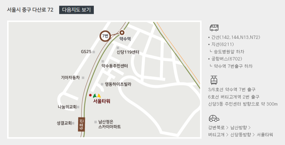 약수역,버티고객역 도보역세권이며 3분 거리에 모기업인 서울송도병원이 위치하고 있어 응급상황에도 빠른 조치를 받을 수 있습니다.
