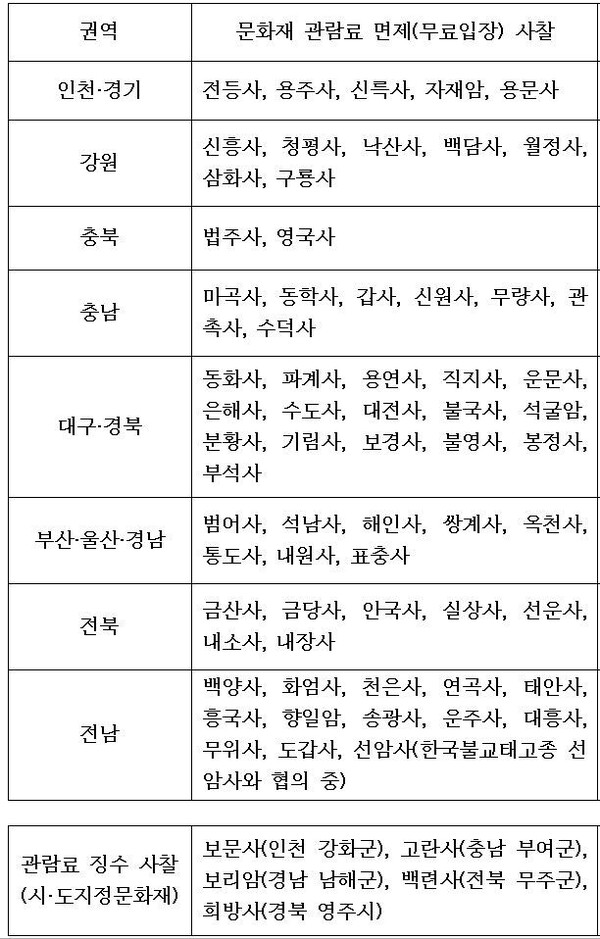 2023년 5월 4일부터 전국 국공립공원 내 사찰에서 징수하고 있던 문화재 관람료가 60년 만에 폐지되었습니다.