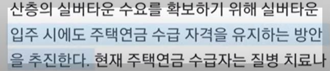 앞으로는 주택연금 가입한 상태에서 실버타운에 입주해도 주택연금을 계속 수급할 수 있게 해준다는 내용입니다.