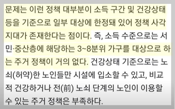 그 사이에 있는 소득 3~8 분위를 위한 실버타운 공급은 전무했는데 이를 정부가 주도적으로 공급하겠다는 내용입니다.