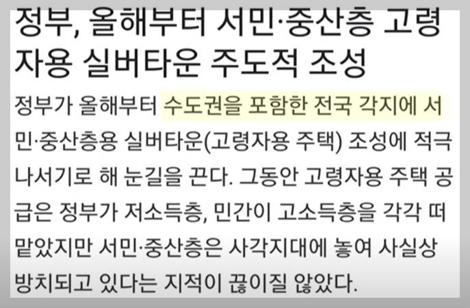 중산층, 서의 노후를 위한 대단위 실버타운 공급이 이뤄질 거라고 생각되니 기대가 됩니다.