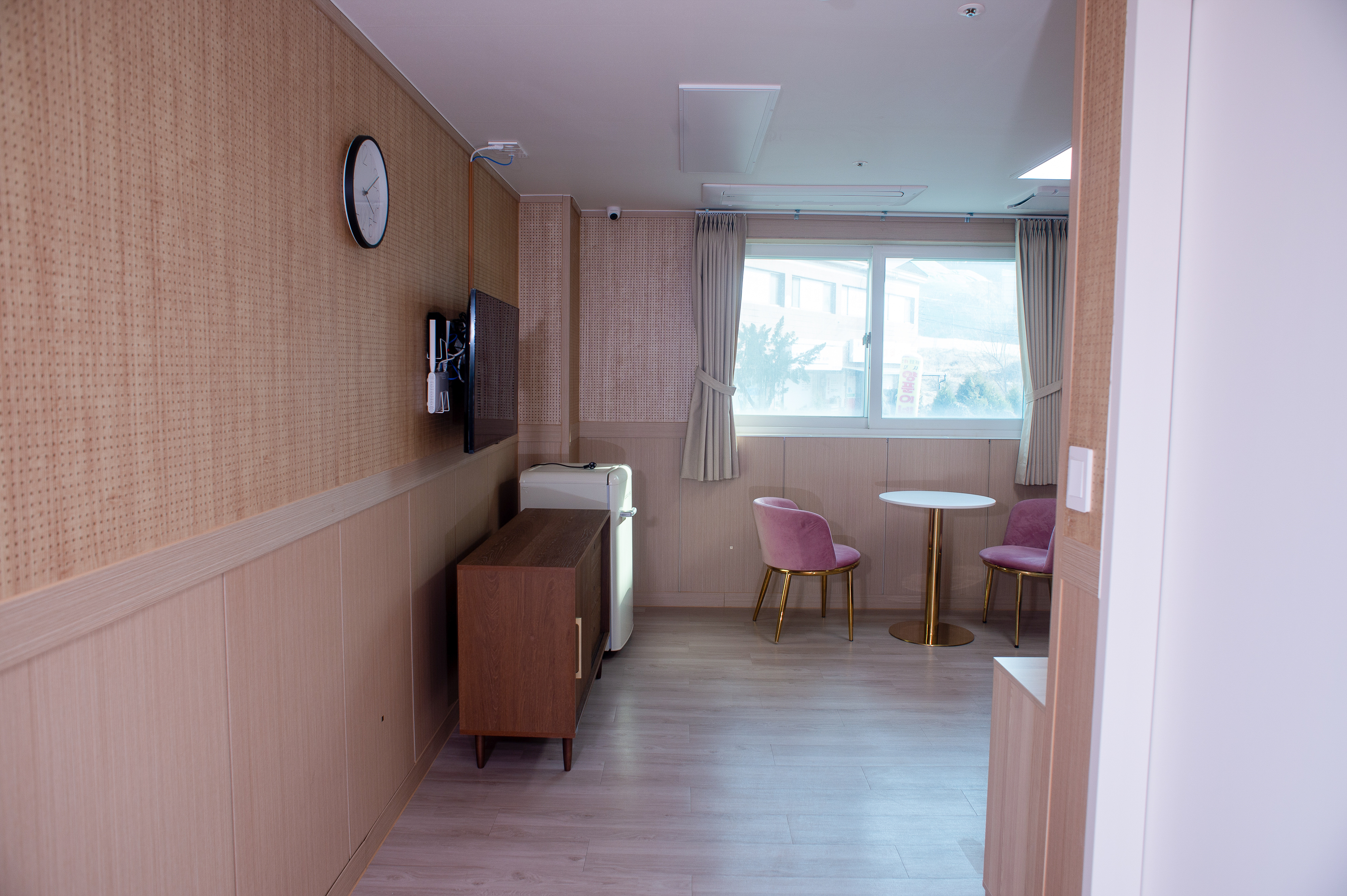 안전시설, 시스템에어컨, 공기순환기, 낙상방지 저상형 침대, 넓은 공간, 전용욕실&화장실, 냉장고, TV, 수납공간, 선반 구비