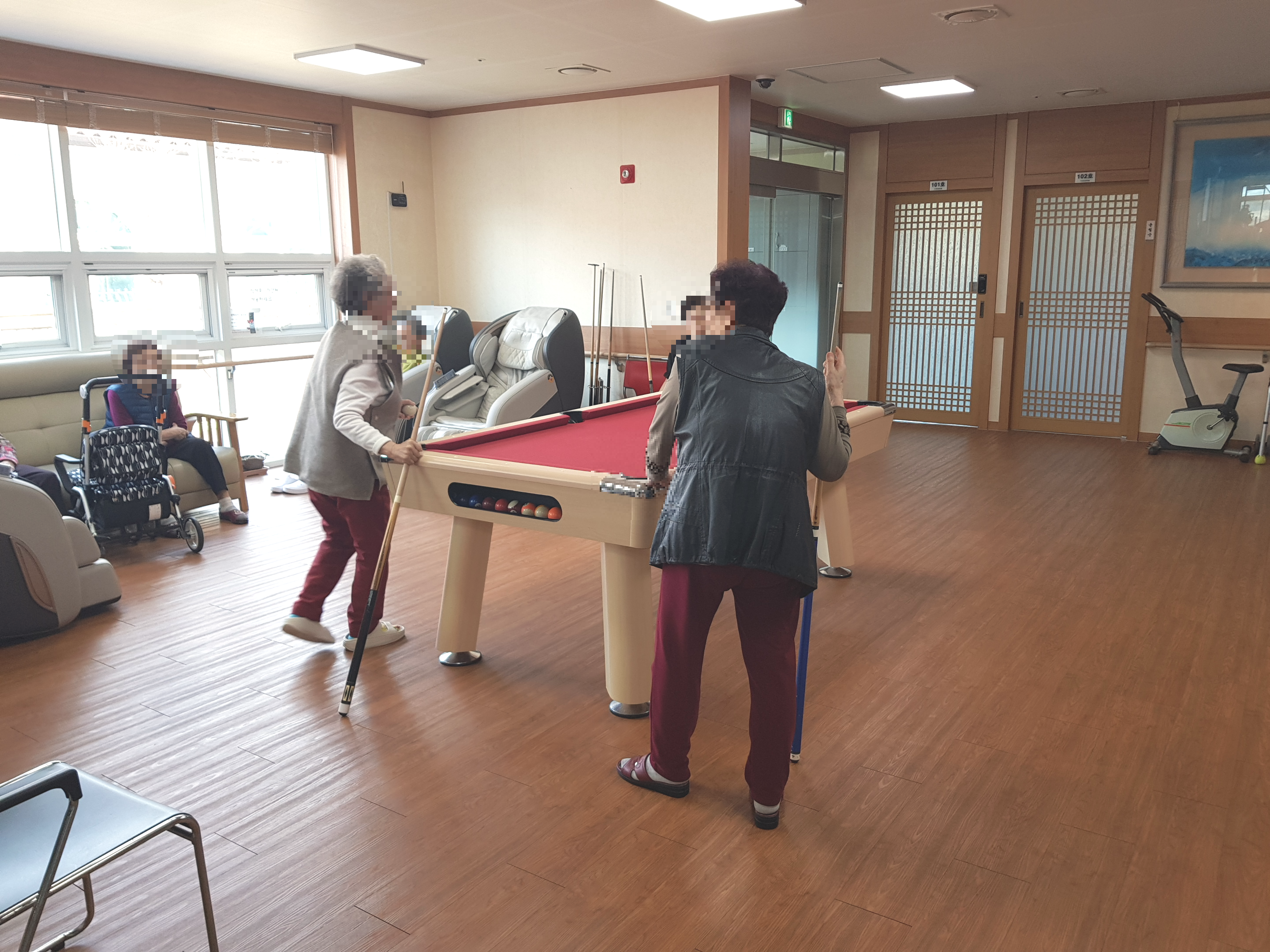 방문한 날 어르신 세분이 포켓볼 경기 중이셨는데 다들 수준급 실력이어서 깜짝 놀랐습니다.