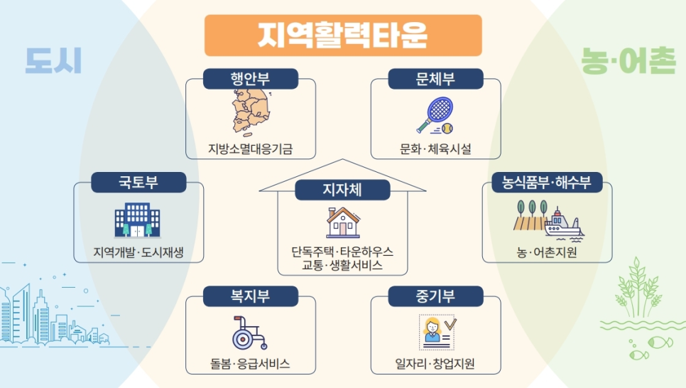소개해드린 5곳의 지역활력타운과 경북 청도, 충남 예산까지 총 7개의 지역활력타운 사업이 선정되어 진행되고 있습니다.