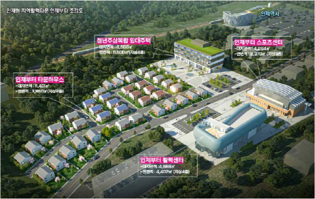 2027년 개통 예정인 KTX 인제역 도보 거리에 위치한 지역에 타운하우스와 청년임대주택 90호를 조성할 계획입니다.
