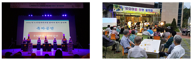 ■ 내부프로그램 : 건강체조, 난타교실, 스마트폰교실, 컴퓨터교실, 요가, 합창반, 노래교실, 도예교실, 서예교실, 사군자교실, 라인댄스 등 (케어홈 프로그램 별도)